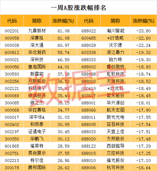 数据显示,深圳本地股中,本周共有23股累计涨幅超20%,占A股总数的六成以上。九鼎新材与深赛格累计涨幅均为61.08%,并列涨幅榜冠军,深大通以微弱差距排名涨幅榜第二位,其中深赛格与深大通均为深圳本地上市公司。