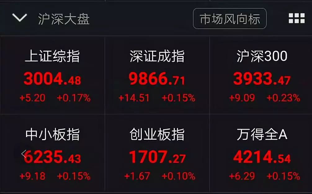 在此背景下,20日早盘A股三大指数全线高开,沪指午盘再度站上3000点,“聪明钱”正在加速入场。