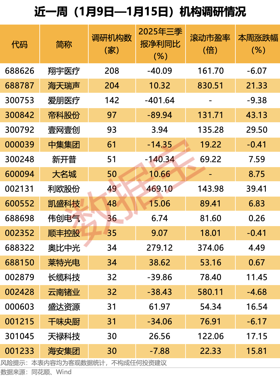 据统计,翔宇医疗近一周(1月9日—15日)有208家机构调研,其中包括63家基金公司、21家证券公司、22家私募、13家保险公司等。