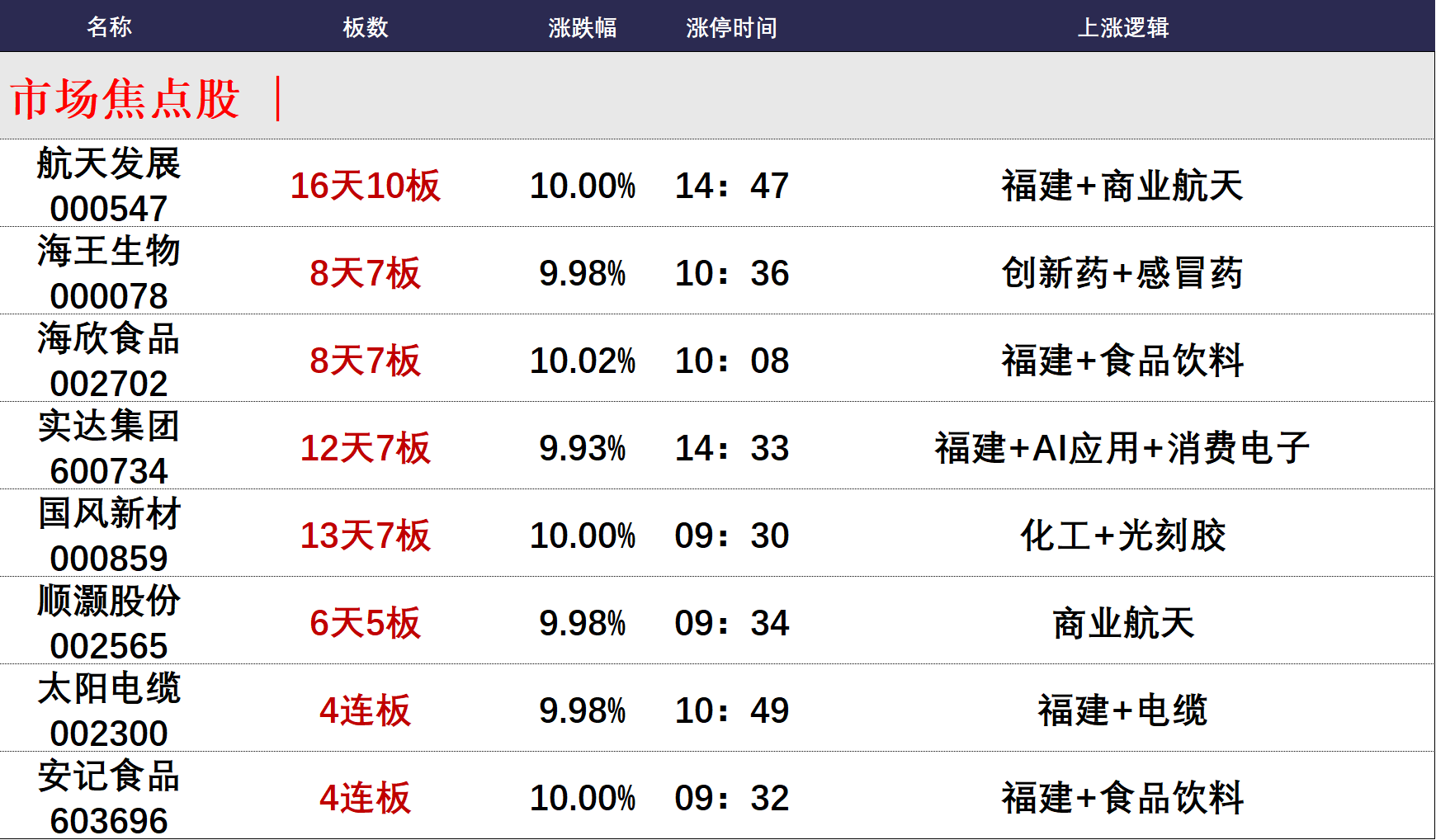 个股方面,全市场近4400只个股上涨,近百股涨停或涨超10%。短线情绪迎来修复,海欣食品、海王生物、实达集团、国风新材、顺灏股份等高位人气股均走出反包板。“炒地图”行情再现,福建本地股全线爆发,合富中国近29个交易日斩获15个涨停,航天发展录得16天10板,太阳电缆、安记食品双双晋级4连板。
