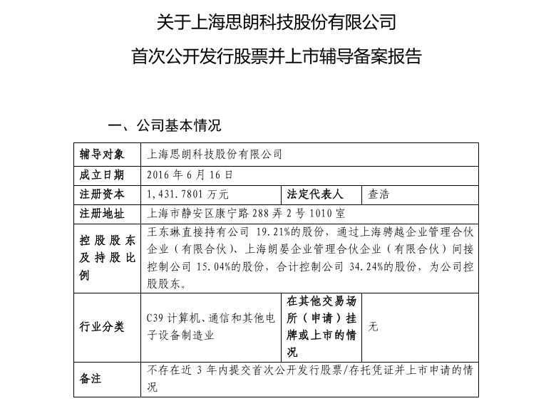 近日,上海思朗科技股份有限公司(下称“思朗科技”)在上海证监局办理辅导备案登记,辅导机构为国泰海通证券。
