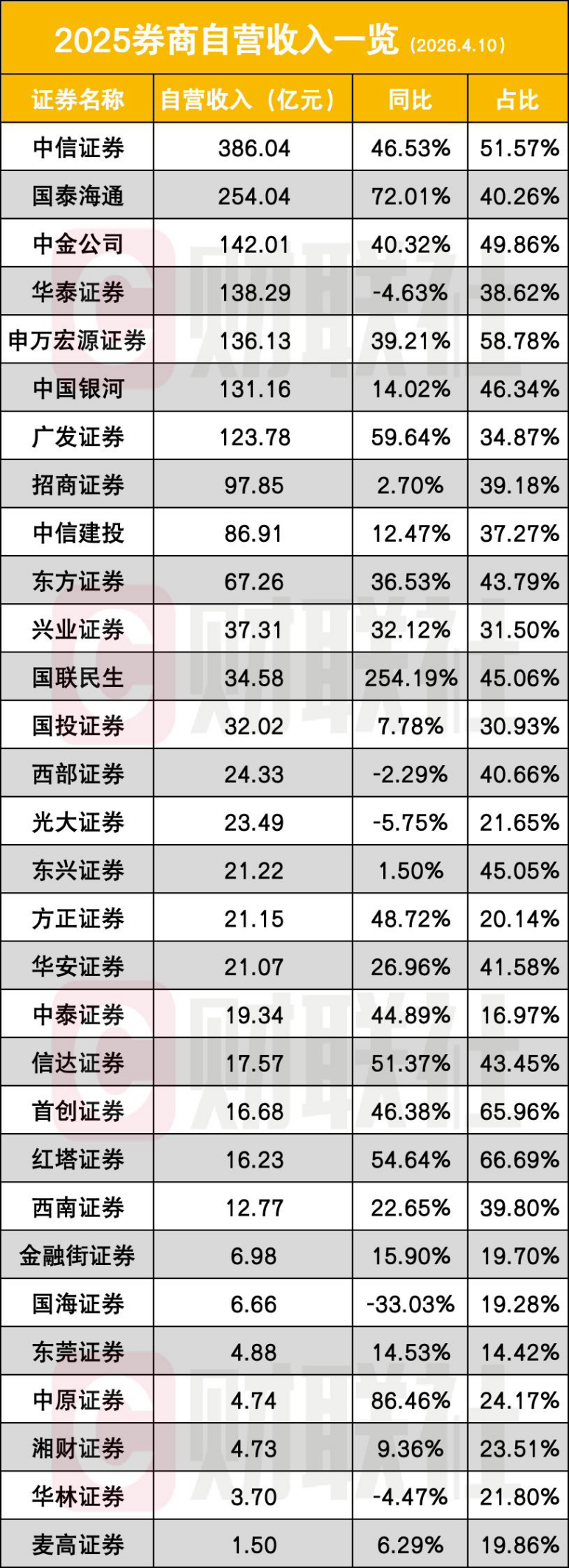 自营爆发年!头部券商一半营收是自营 30家券商入账1894亿