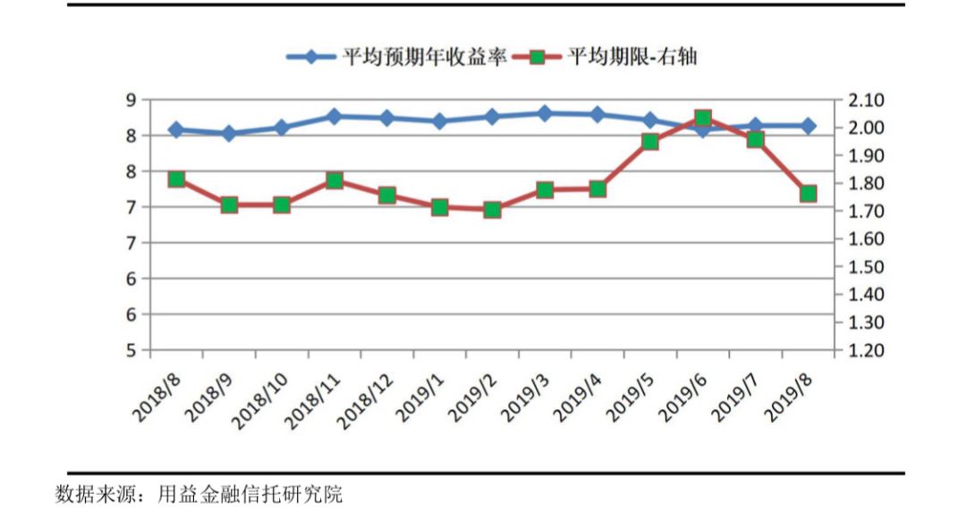 从信托收益率和产品期限角度,8月成立的集合信托产品平均预期收益率为8.13%,与上月持平。而9月产品的平均期限为 1.76 年,较上月同期相比缩短 0.2 年,产品流动性持续增强。