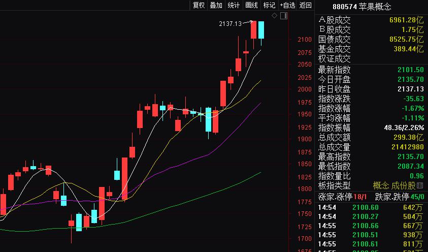 随着A股的反弹和苹果发布会的日益临近,近期,苹果概念股也表现强势,9月2日至今,苹果概念指数上涨近10%。不过,昨日,苹果概念股全线回撤。