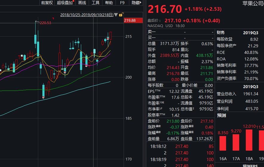 9月11日凌晨,“科技圈的春晚”2019苹果秋季发布会在美国召开,新款iPhone亮相,A13芯片来了,传说中的“浴霸三摄”也来了,而且苹果的续航能力终于得到增强......股价一度下跌的苹果突然尾盘发力,涨1.18%。