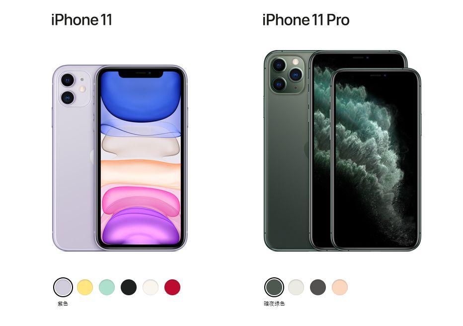 今年,苹果继续玩配色,iPhone 11 Pro有四个配色,包括银色、金色、太空灰和午夜绿。低价版的iPhone 11推出了紫色、绿色、白色、黄色、黑色和红色六款配色。
