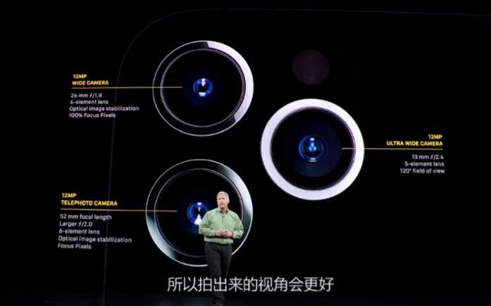 iPhone 11 Pro和iPhone 11 Pro Max后置摄像头采用了“浴霸三摄”的设计。据介绍,iPhone 11 Pro和iPhone 11 Pro Max配备广角镜头、远摄镜头和超广角镜头。