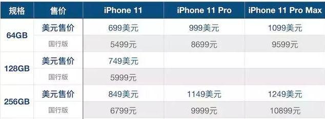 苹果正式公布了新款iPhone的命名:iPhone 11、iPhone 11 Pro和iPhone 11 Pro Max,起价分别为:699美元(官网售价5499人民币起)、999美元(官网售价8699人民币起)、1099美元(官网售价9599人民币起)。与去年持平,甚至iPhone 11的国行价格比去年iPhone XR上市时还要便宜1000元人民币——可谓“加量不加价”了。