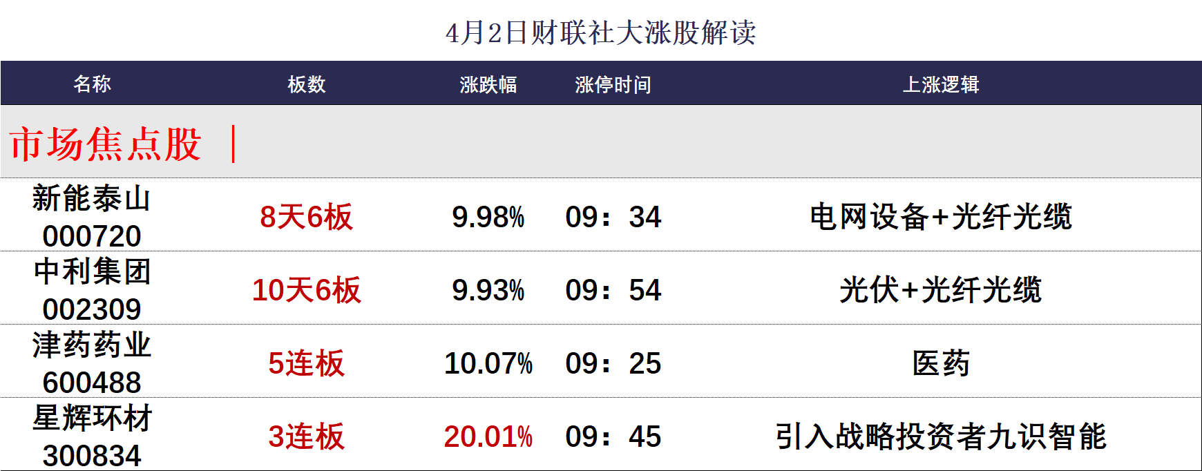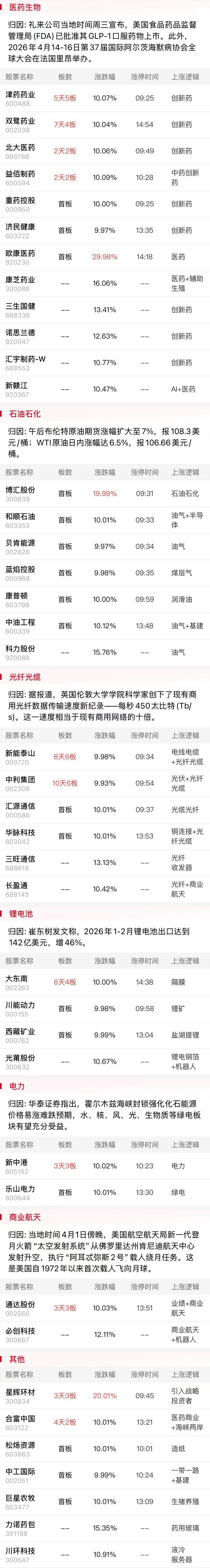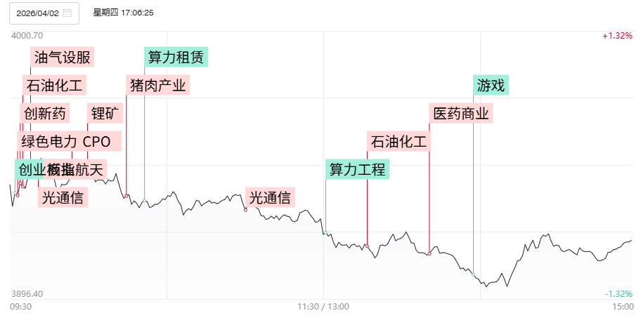 4月1日,礼来宣布美国食品和药物管理局(FDA)批准了口服小分子GLP-1受体激动剂Foundayo™(orforglipron)上市。在近期多重利好叠加提振下,创新药概念持续站上风口,连板高标津药药业一字涨停晋级5连板,减肥药概念重药控股全天封死一字涨停,高位人气股美诺华展开反核,趋势抱团股三生国健、信立泰、万邦德继续向上刷新历史高点。随着创新药方向持续高举高打板块热度进一步向低位方向发散,北大医药、益佰制药晋级2连板,合富中国、济民健康午后涨停。与此前绿电板块类似,随着板块内低位补涨品种的不断涌现,有利于高位股继续向上拓展空间的同时,一些事件性驱动的低位细分也容易成为补涨资金青睐目标,对于一些此前反弹落后的绩优品种的补涨潜质仍可积极挖掘。