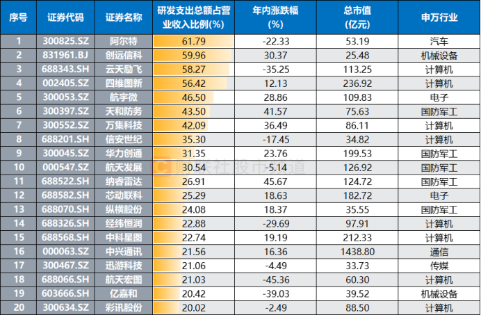 对于可关注标的方面,筛选低空经济概念股,共有20只相关标的2023年年报中显示其研发支出总额占营业收入比例超20%。其中,阿尔特、创远信科、云天励飞、四维图新、航宇微等股研发占营收比例数据居前。此外,从业绩层面来看,目前已有3只低空经济概念股披露今年的三季报预告,其中,安泰科技、银轮股份分别为预增、略增。