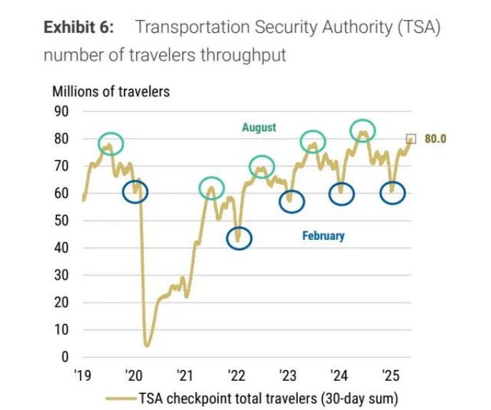 图表 6:美国运输安全管理局(TSA)旅客吞吐量数量