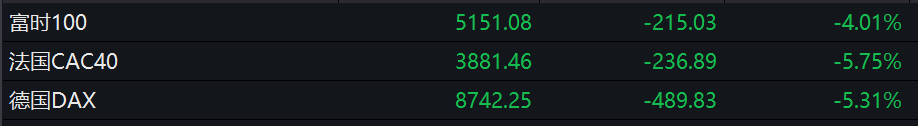 在美股暴跌的情况下,全球市场均无法独善其身,昨夜,巴西IBOVESPA指数盘中下跌12.5%,再度触发熔断。加拿大S&P/TSX指数大跌12%,触发熔断。而欧洲方面,英国富时100指数,法国CAC40指数和德国DAX指数跌幅受窄,截至收盘,三大股指分别跌4.01%,5.75%和5.31%。