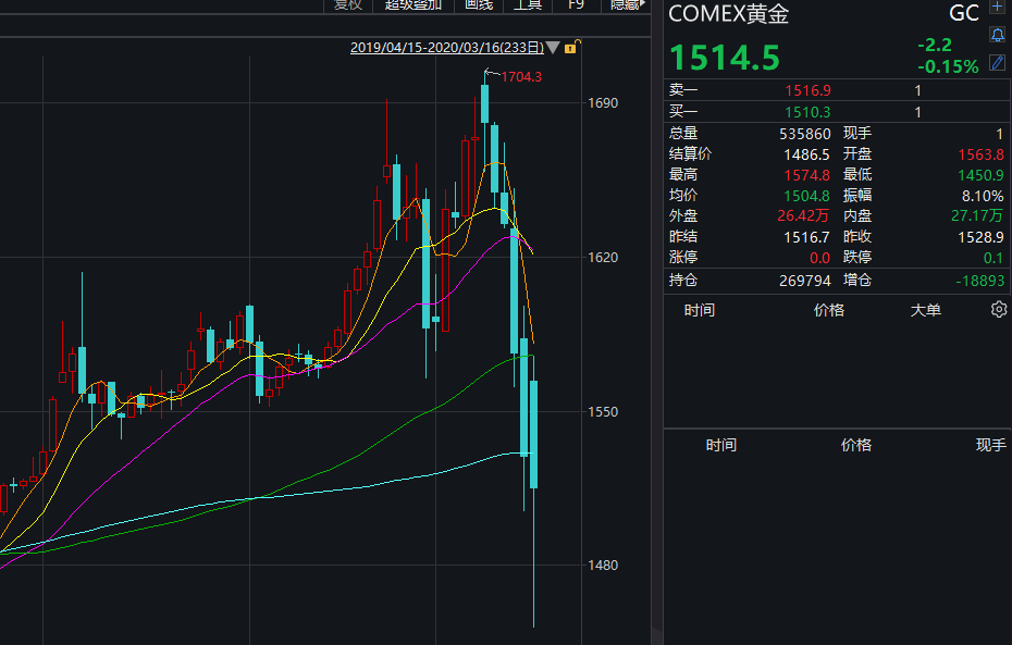 此前被认为是避险品种的黄金都在一路走跌。另外,油价也稳定暴跌,其中,NYMEX原油期货收跌9.69%,报29美元/桶。