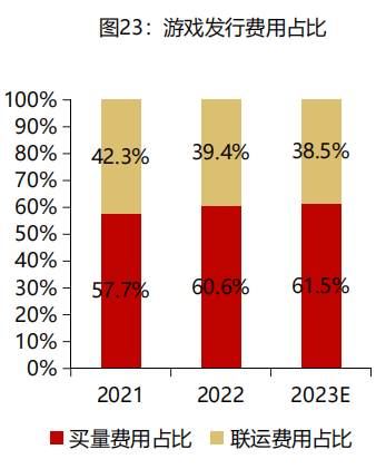 从发行模式看,目前游戏行业买量逐渐占据主导地位,预计2023年买量费用占比将达61.5%,其中短视频行业凭借自身庞大的流量池已成为网络游戏广告投放的首要曝光媒介,投放费用占比达45.2%。