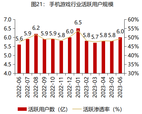 截至2023年6月,行业月活用户规模达6亿,游戏市场进入存量竞争阶段,新游市场的竞争环境加剧。