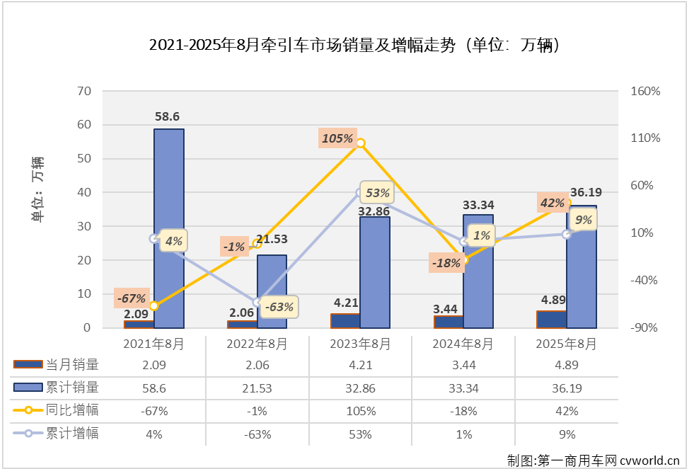 8月牵引车销售近5万辆增长42% 同比“4连增”
