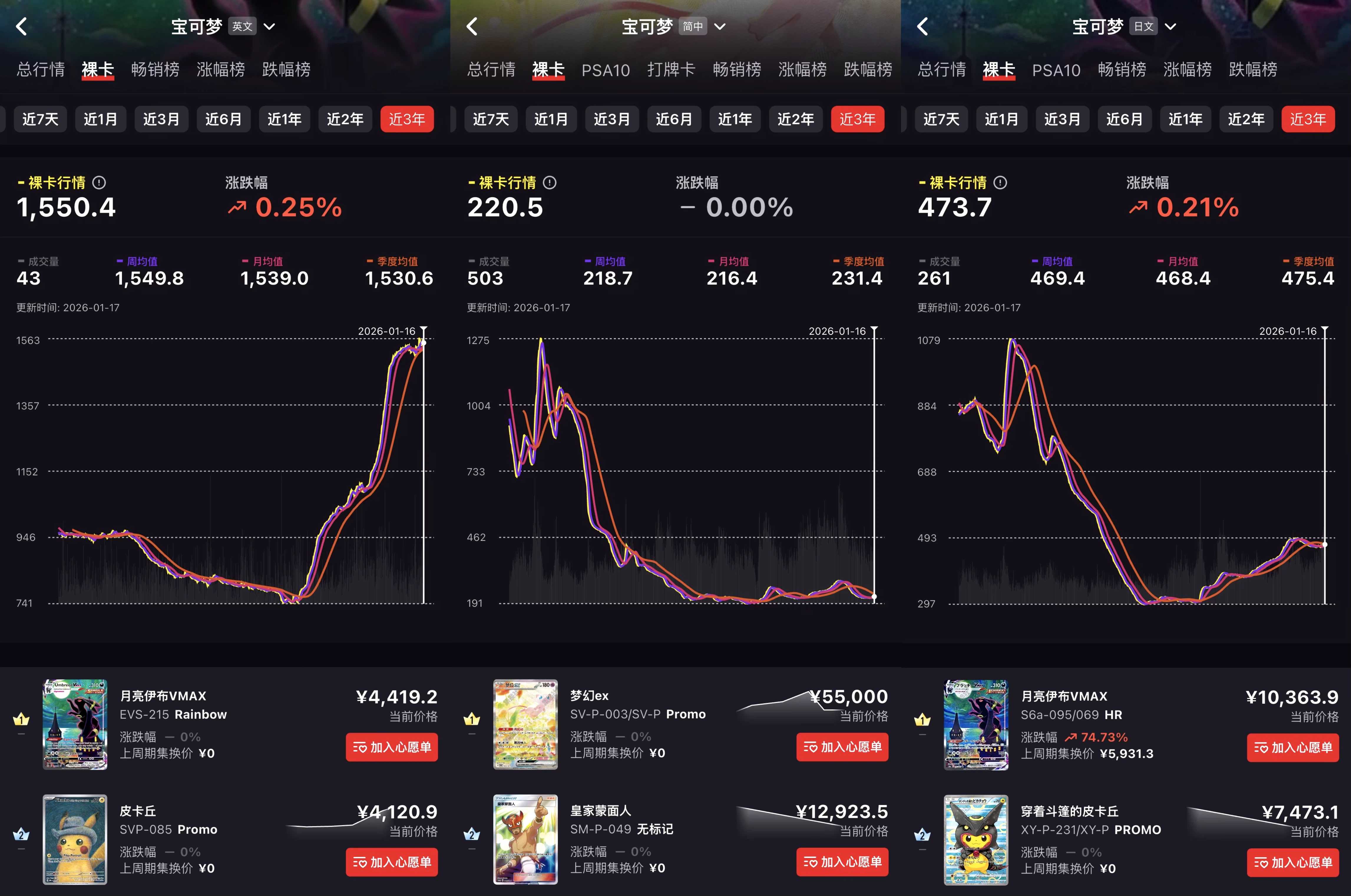 如今,宝可梦已构建起“线上数字赋能-线下场景深耕-全球竞技破圈”的多生态融合体系,国内企业也在围绕卡牌运营产业链加速布局。市场扩容带来的影响,可以从卡牌交易的二级市场情况得以窥见。