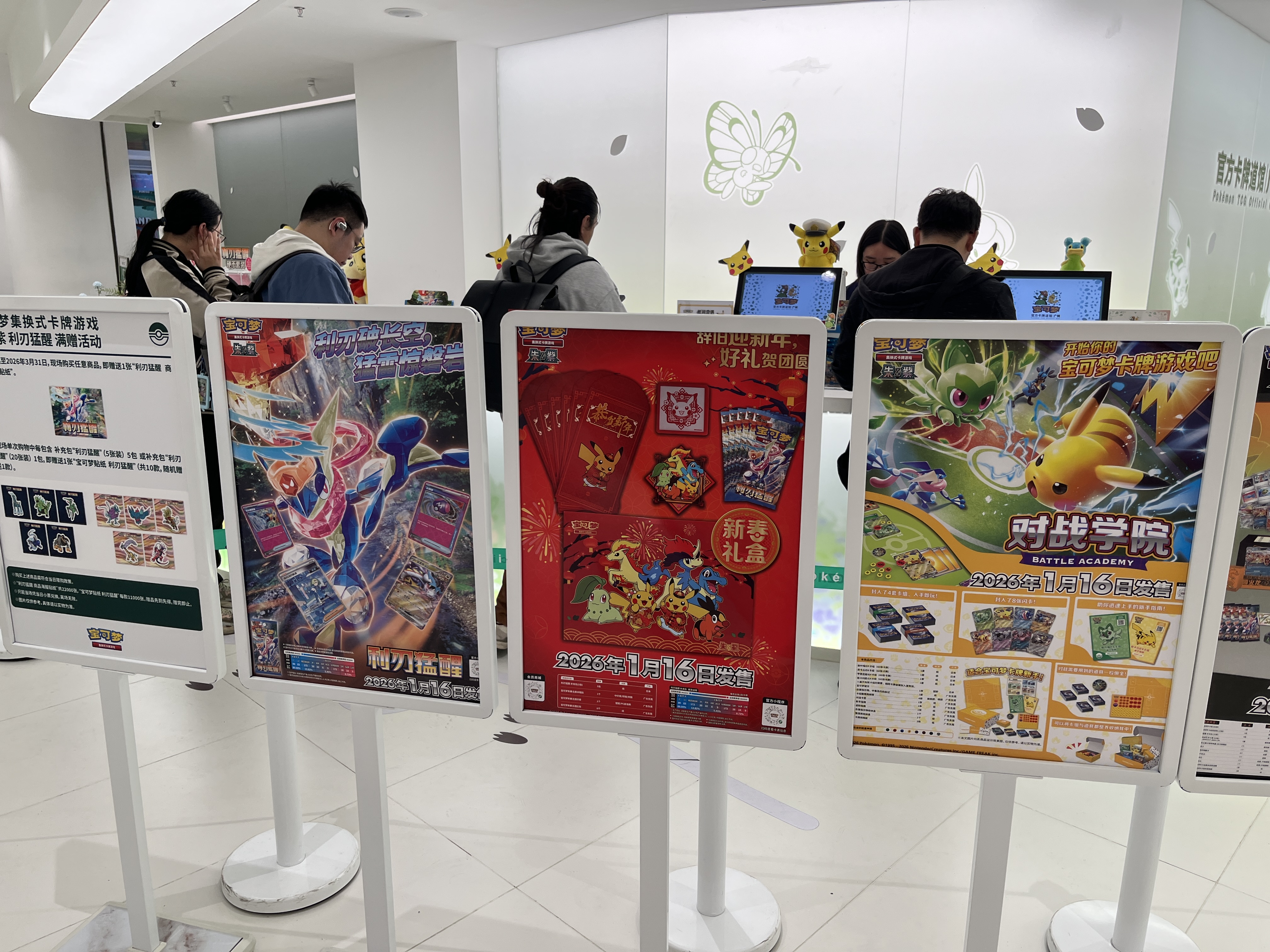 IP认同度和玩法基本盘,组成了宝可梦卡牌拓展中国市场的核心优势。2025年下半年,宝可梦卡牌官方道馆在中国市场呈现快速拓店、赛事体系完善、运营标准化三大核心动向,以一线城市为核心向新一线渗透,联动商业地产打造沉浸式消费场景。在走访其官方道馆时,有店员向记者表示,道馆会设置不同类型的活动,给想要用宝可梦卡牌对战的玩家提供场地,同时还会面向新手玩家设置入门课程。