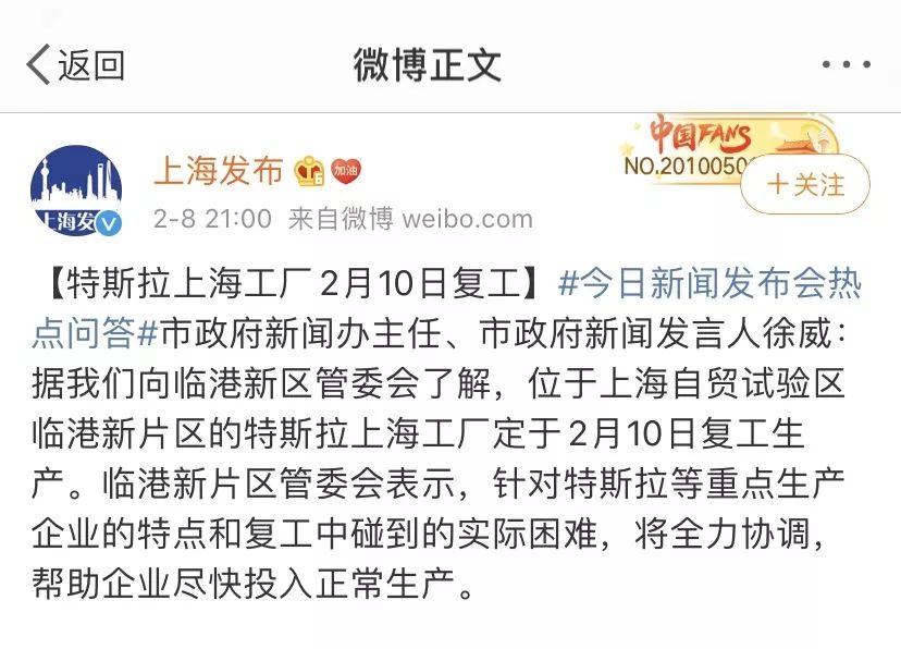 根据消息可知,特斯拉上海超级工厂于今日(2月10日)复工,开始全力生产国产Model 3,受疫情影响,原计划2月初交付会暂缓,后期会在疫情好转后逐渐提升产量。