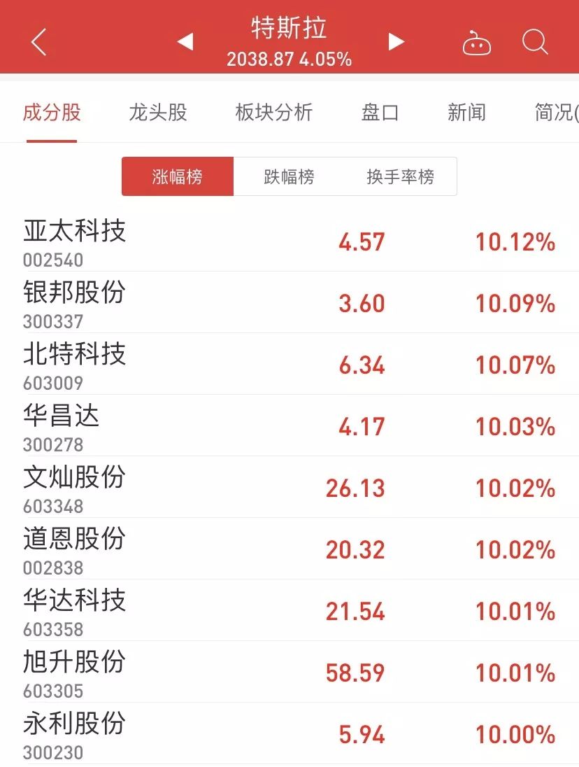 特斯拉上海工厂的顺利复工,令近期持续走强的特斯拉板块实现空中加油的效果,特斯拉概念再次掀起涨停潮,亚太科技、银邦股份、华昌达、文灿股份、旭升股份等相关个股集体涨停。