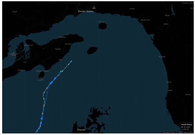 数据显示,周一早些时候,两艘悬挂印度国旗的大型气体运输船(VLGC)——“Jag Vasant”号和“Pine Gas”号,正从阿联酋海岸向北驶向伊朗的格什姆岛(Qeshm)和拉拉克岛(Larak)。