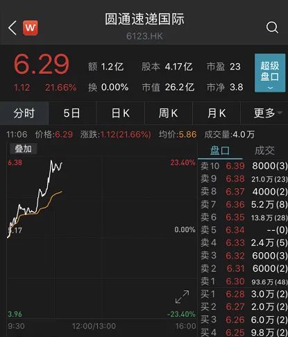 资金备战“双11”,港股快递股也大幅上涨,圆通速递国际盘中涨逾20%。