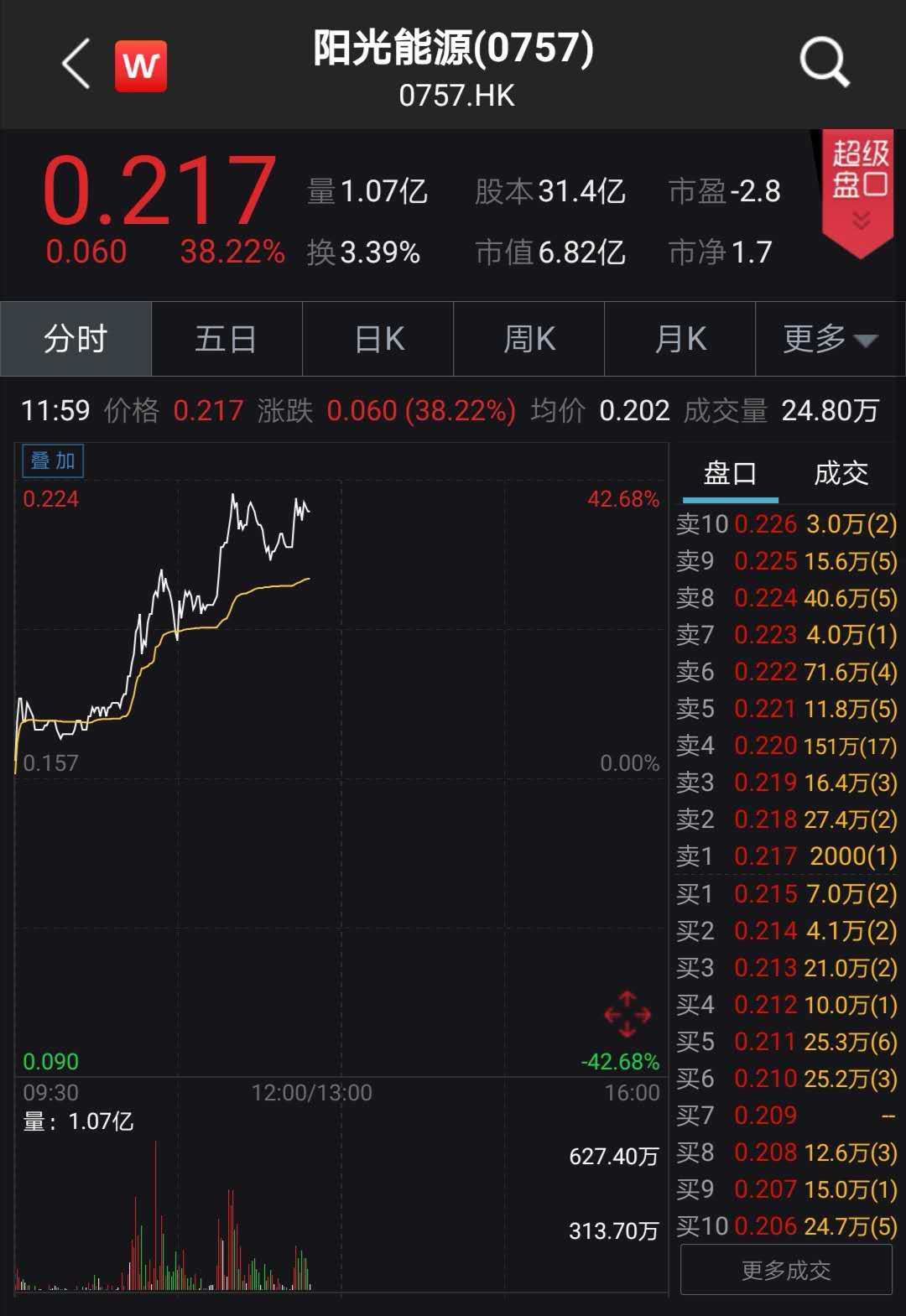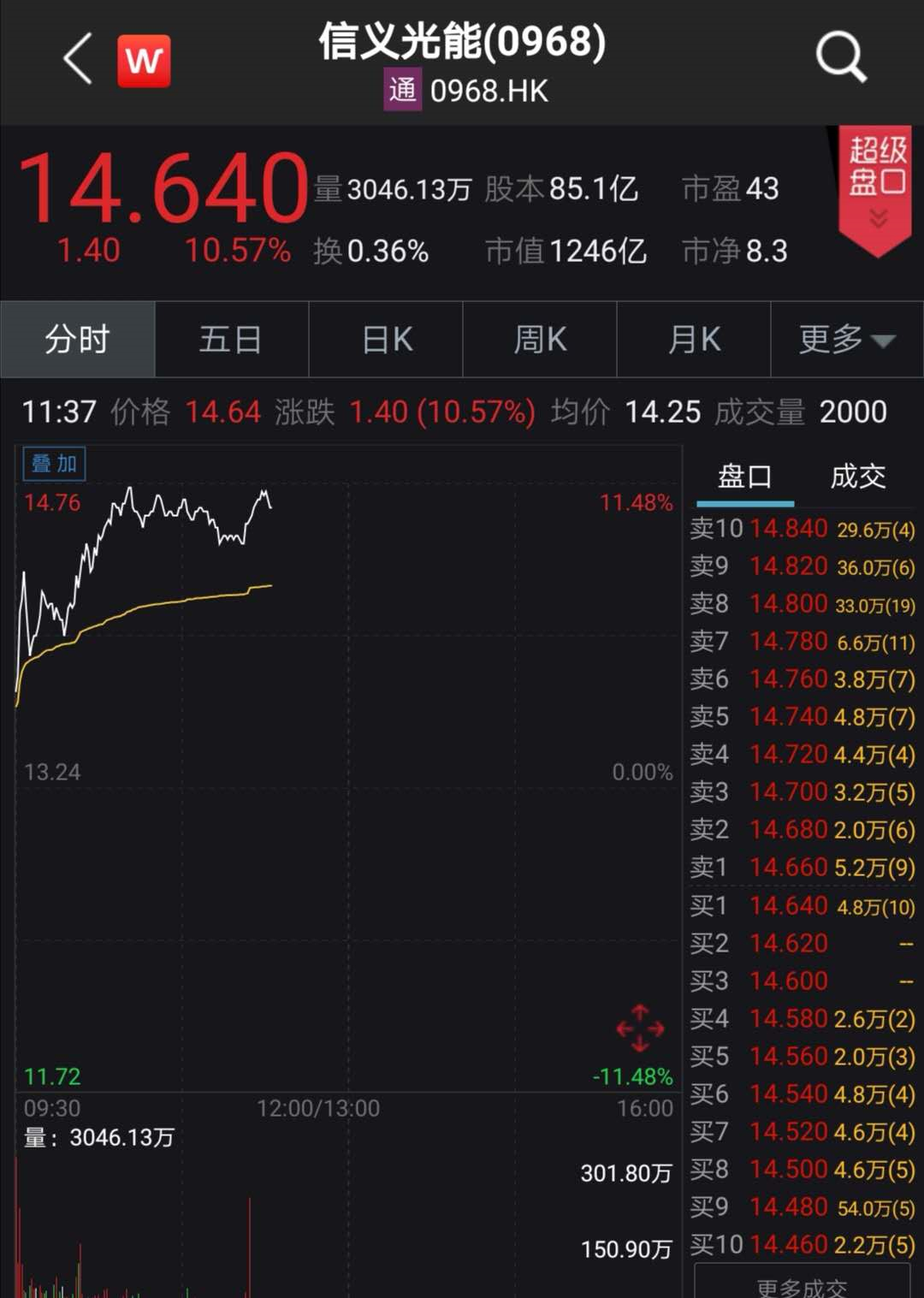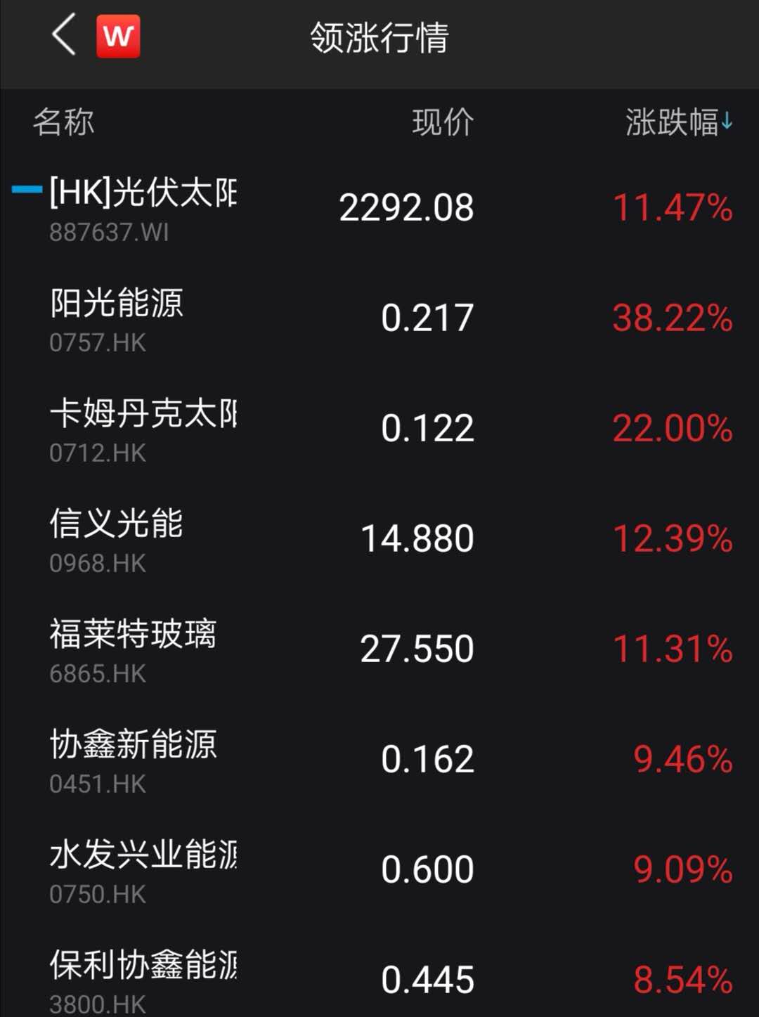 恭喜手拿光伏股的朋友,明天A股就要开盘了。今日,港股的光伏股,尤其光伏玻璃还在疯狂上涨,截至午盘,阳光能源大涨超38%,福莱特玻璃、信义光能两大龙头涨幅超11%,双双创出历史新高。