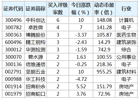 62股获机构买入型评级 中科创达关注度最高