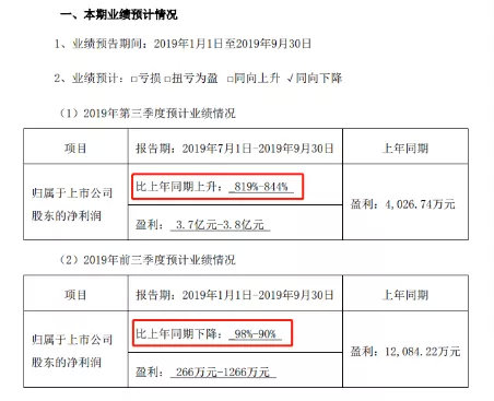 10月7日,天邦股份发布今年前三季度业绩预告,预计前三季度净利润在266万元-1266万元区间,较去年同期下降98%-90%。其中,第三季度净利润预计达到3.7亿元-3.8亿元,较去年同期上升819%-844%。