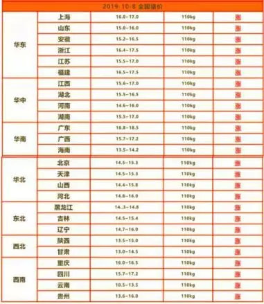 国庆节期间,市场猪肉供应总体充足,猪肉价格整体平稳,节日后期猪价略有上涨。根据猪价格网公布的数据显示,10月1日,全国猪价平均涨幅仅0.01元/斤,全国仅3个省(市)猪价上涨;10月2日,全国猪价上涨0.03元/斤,全国猪价16省(市)保持平稳;10月3日,全国猪价开始出现普遍上涨态势,涨幅为0.13元/斤;直至今日,全国均价上涨0.22元/斤,26个省(市)上涨。