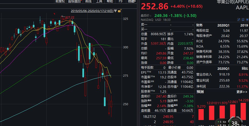 美国大型科技股集体收涨,苹果涨4.4%,亚马逊涨7.03%,奈飞涨7%,谷歌涨4.2%,Facebook涨2.34%,微软涨8.23%。