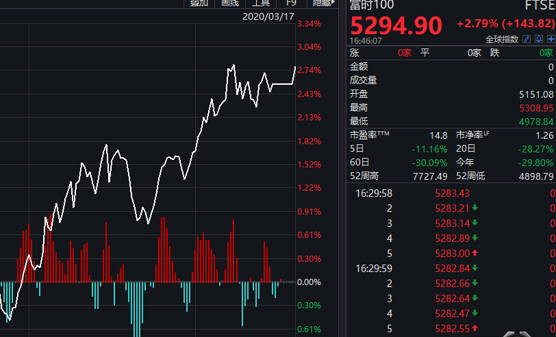 美股的强势也带动了欧洲股市反弹,周二欧股收盘集体上涨,德国DAX指数涨2.25%报8939.1点,法国CAC40指数涨2.84%报3991.78点,英国富时100指数涨2.37%报5273.13点。
