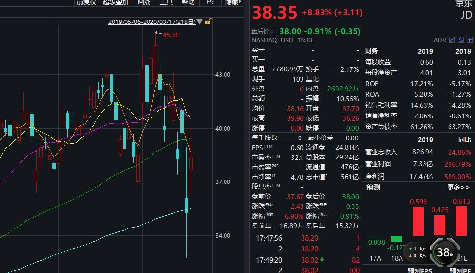热门中概股多数收涨,阿里巴巴涨3.33%,京东推20亿美元回购,涨8.83%,百度涨1.62%;万达体育涨23.81%,迅雷涨18.91%,YY>欢聚时代涨15.7%,哔哩哔哩涨9.88%,微博涨3.05%,拼多多涨3.73%,网易涨4.38%,人人网跌14.61%,蔚来汽车跌1.36%。