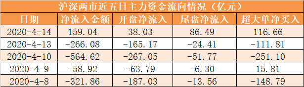 今日沪深两市主力资金开盘净流入38.03亿元,尾盘净流入86.49亿元,两市全天资金净流入159.04亿元。