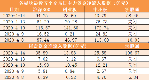 4月14日,A股市场整体上涨。截至收盘,上证指数收报2827.28点,上涨1.59%,深证成指收报10475.71点,上涨2.47%,创业板指数收报1985.43点,上涨3.24%。两市合计成交5893.28亿元,较上一交易日增加902.93亿元。