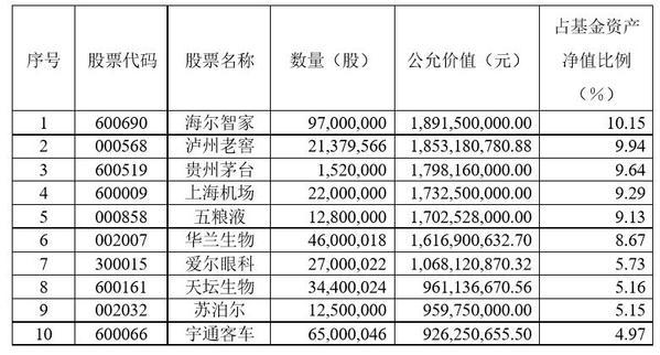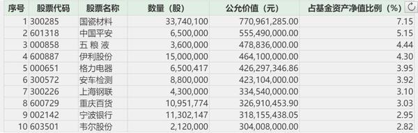 其中,股票仓位从92.11%上升至94.90%,增加了2.79个百分点。从个股来看,较三季度而言,海尔智家、泸州老窖、贵州茅台、上海机场、华兰生物、天坛生物、爱尔眼科等均有被增持。