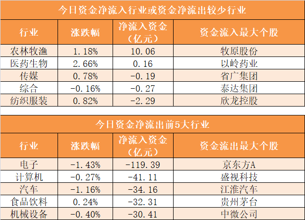 28个申万一级行业中,2个行业实现资金净流入,其中农林牧渔行业净流入10.06亿元居首。
