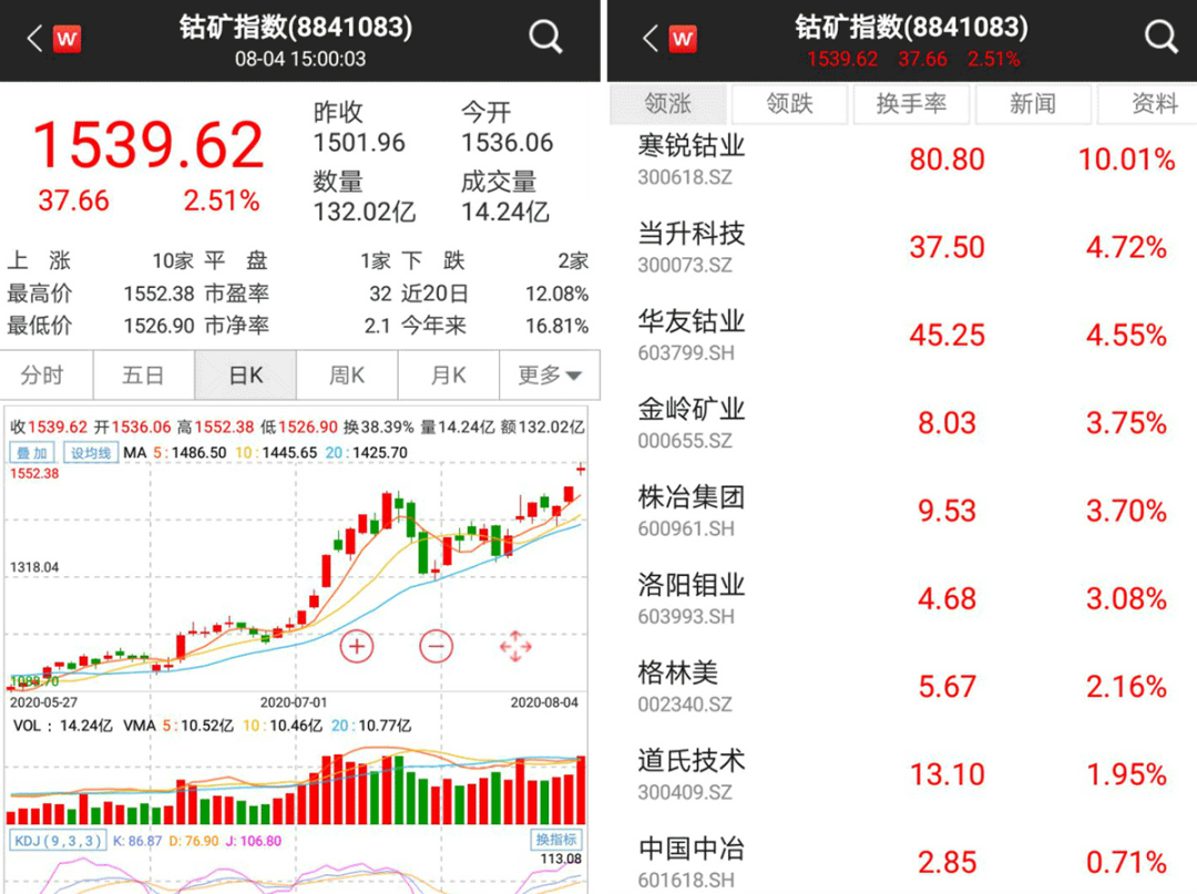 8月4日,钴概念股集体大涨。截至收盘,寒锐钴业涨停,华友钴业涨逾4%,洛阳钼业涨逾3%。