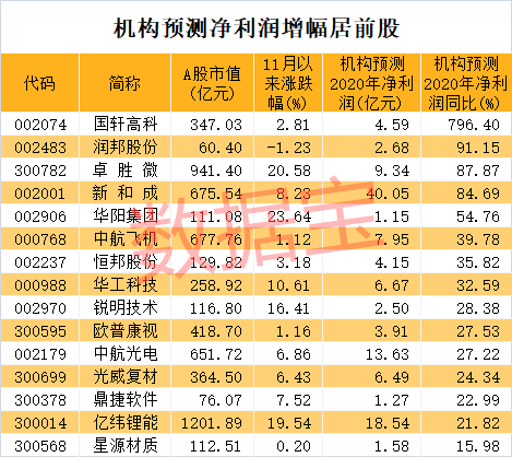 不过需要指出的是,股东人数的增加与减少与股价的涨跌也并非一一对应,虽然从股东人数变化中可看到股票集中度的情况,从而进一步分析出主流资金的进与出,但由于滞后性的影响,同时影响股价涨跌还有其它诸多因素,如大盘系统性风险、业绩、题材、分红等因素,仅靠单一因素研判个股是否具有投资机会有失偏颇。 按照5家以上机构一致预测数据,上述53股中有15股今年净利润有望同比增长10%以上。机构预测增幅最高的是国轩高科,一致预测今年净利润为4.59亿元,同比增长796.4%。国轩高科是国内最早从事新能源汽车用动力锂离子电池(组)自主研发、生产和销售的企业之一。 财信证券认为,新能源车有望从当前的中欧共振转向中、美、欧共振,在需求增长确定性被加强的逻辑下,需要关注后续上游材料的价格上涨,三季度的六氟磷酸锂/电解液涨价有望持续,后续建议关注上游的碳酸锂和钴等环节的投资机会。除国轩高科外,机构预测净利润增幅较高的还有润邦股份、卓胜微、新和成、华阳集团、中航飞机等。