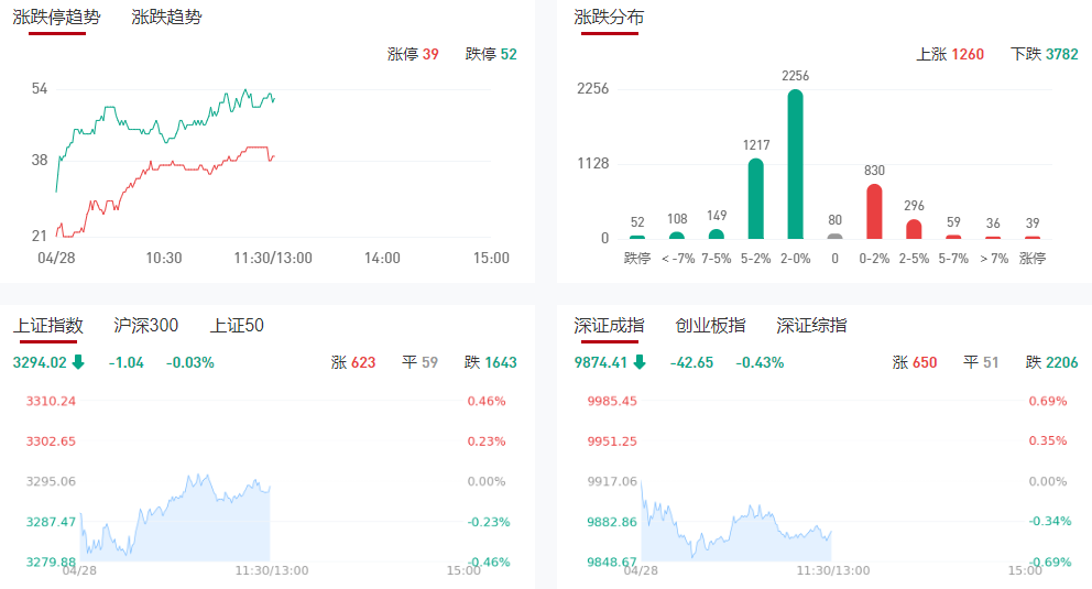 午评:创业板指半日跌0.55% 地产股集体大跌