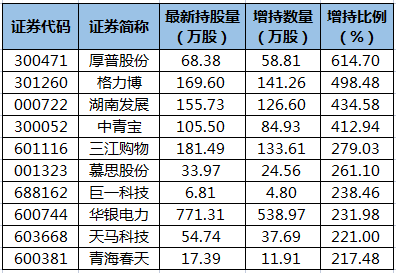 其中,持股量环比增幅在100%以上的共有26只,环比增幅最大的是厚普股份,陆股通最新持有68.38万股,持股量环比增幅达614.7%。