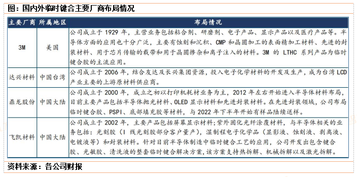 根据新思界产业研究中心发布的《2023-2028年临时键合胶(TBA)行业市场深度调研及投资前景预测分析报告》显示,2022年全球临时键合胶市场规模约为2.2亿美元,同比增长8.6%。全球范围内,布局临时键合胶市场的企业主要有美国3M、美国杜邦、美国道康宁、美国BrewerScience、日本TOK、英国MicroMaterials等国际企业以及台湾达兴材料、中国大陆的鼎龙股份、飞凯材料、未上市公司深圳化讯、浙江奥首、深圳先进电子材料、华进半导体等。受技术发展影响,目前全球市场由美国3M与台湾达兴材料两家企业占据主导地位,合计市场占有率已超40%,行业集中度较高。