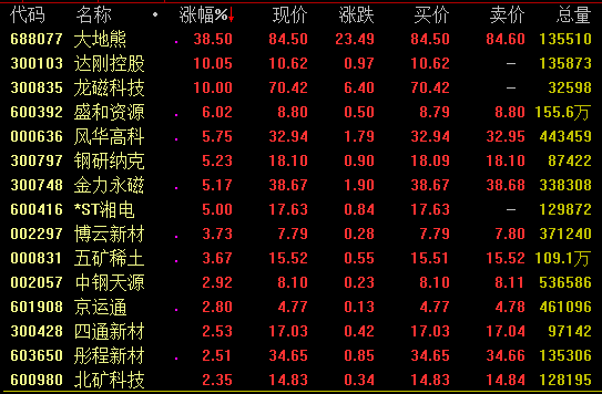 受中美摩擦升温影响,稀土板块今日盘中发力走高,截至收盘,科创板个股大地熊涨近40%,达刚控股、龙磁科技涨停,盛和资源涨逾6%。