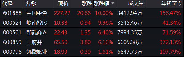 免税概念今日午后再度走强,截至收盘,中国中免、岭南控股涨停,鄂武商A、王府井涨幅超6%。