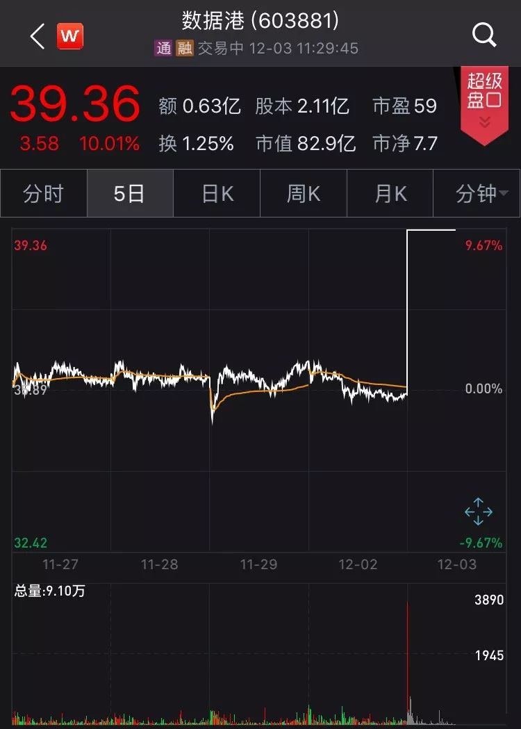 受此消息影响,今日开盘数据港股价即一字涨停,最新市值近83亿元。