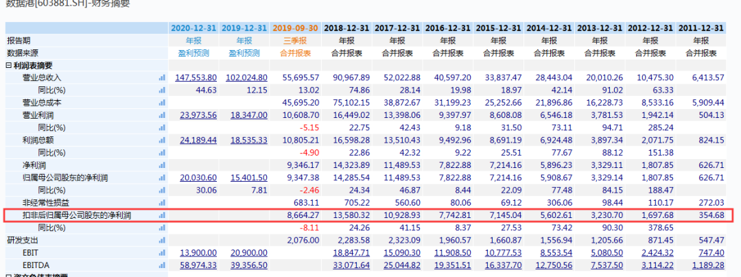 截至2019年上半年,公司已经运营15个自建数据中心,共部署10467个机柜,10.7万台服务器,电力容量合计约21.96万千瓦,IT电力容量合计约6.81万千瓦。公司还是国内少数同时服务于BAT三家互联网巨头的数据中心服务商,BAT业务占比达95%以上。财务数据而言,近几年数据港经营业绩稳步增长。