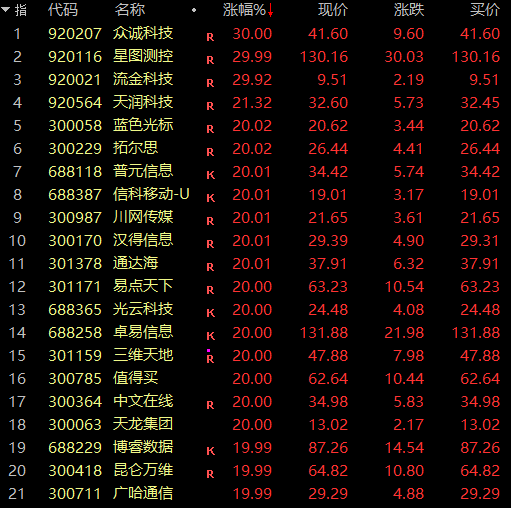 人工智能板块 20%批量涨停!920207 连续30%封板!