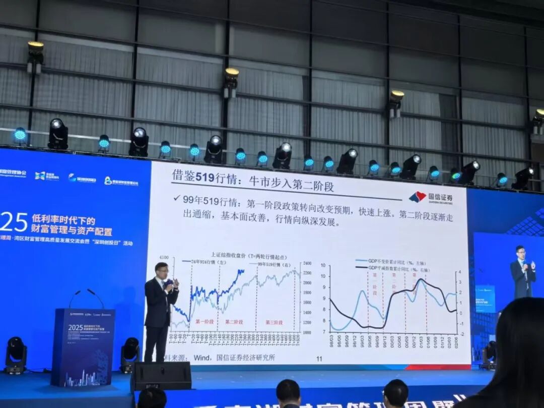 国信证券首席经济学家荀玉根在会上发表了鲜明观点,认为此轮牛市开始于2024年9月24日,宏观背景和1999年的“5·19牛市”比较像,政策发力治理通缩。