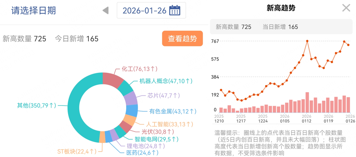 从百日新高去看,板块新高数量前4:化工>机器人>芯片>有色金属