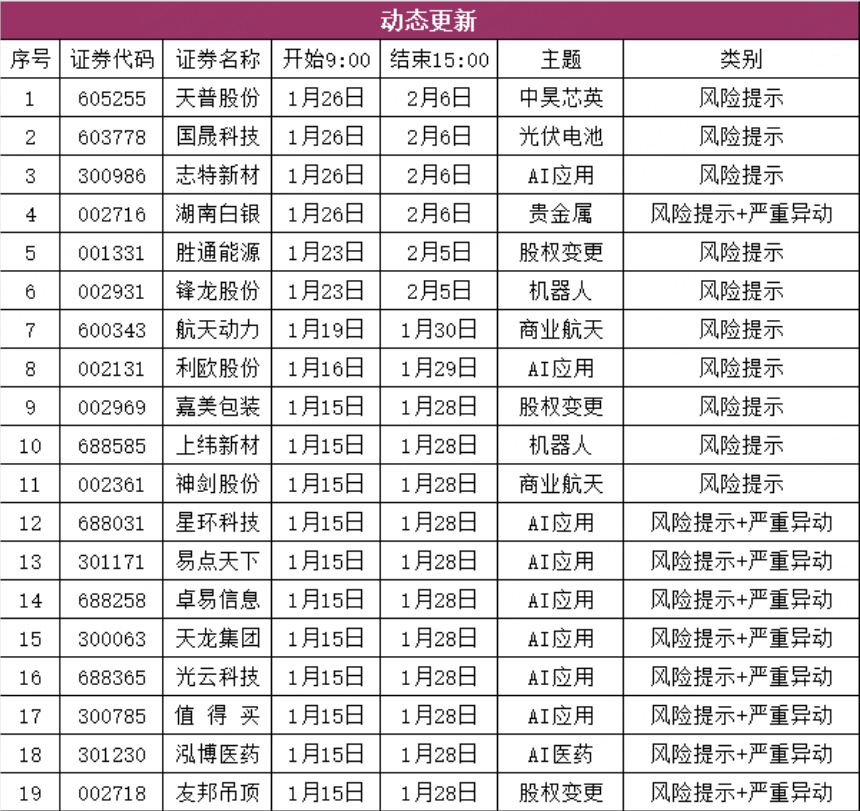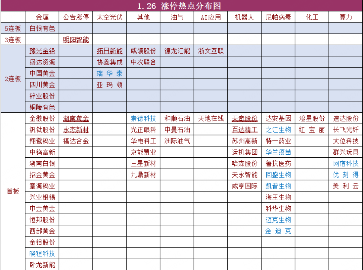 点评:白银黄金期货的“疯狗逼空浪”还在继续,所以昨天竞价开出来有色个股(黄金白银为主)基本都是加速的状态,2个票竞价超预期,高标白银有色业绩雷还高开,进入监管的湖南白银竞价也太高开,这个就是资金的态度,以点代面板块算是彻底高潮了,今天这个方向很难接力,而且尾盘权重有压单,降温的预期是比较明显,期货涨到高位以后,波动振幅也在加大。其他像化工方向的比如红宝丽这种,上周盘前反复提过的还在反复活跃,化工跟有色比相比目前算是在发酵初期吧,可以留意下趋势机会,就跟当初白银只有湖南白银跟白银有色活跃一样,卡一个爆发的节点,板块就顺势起来了,其他低位的粤桂股份,江天化学这种都是连阳走势,其他受边缘地区影响的油气跟航运也在默默走势洲际油气,招商轮船这种。
